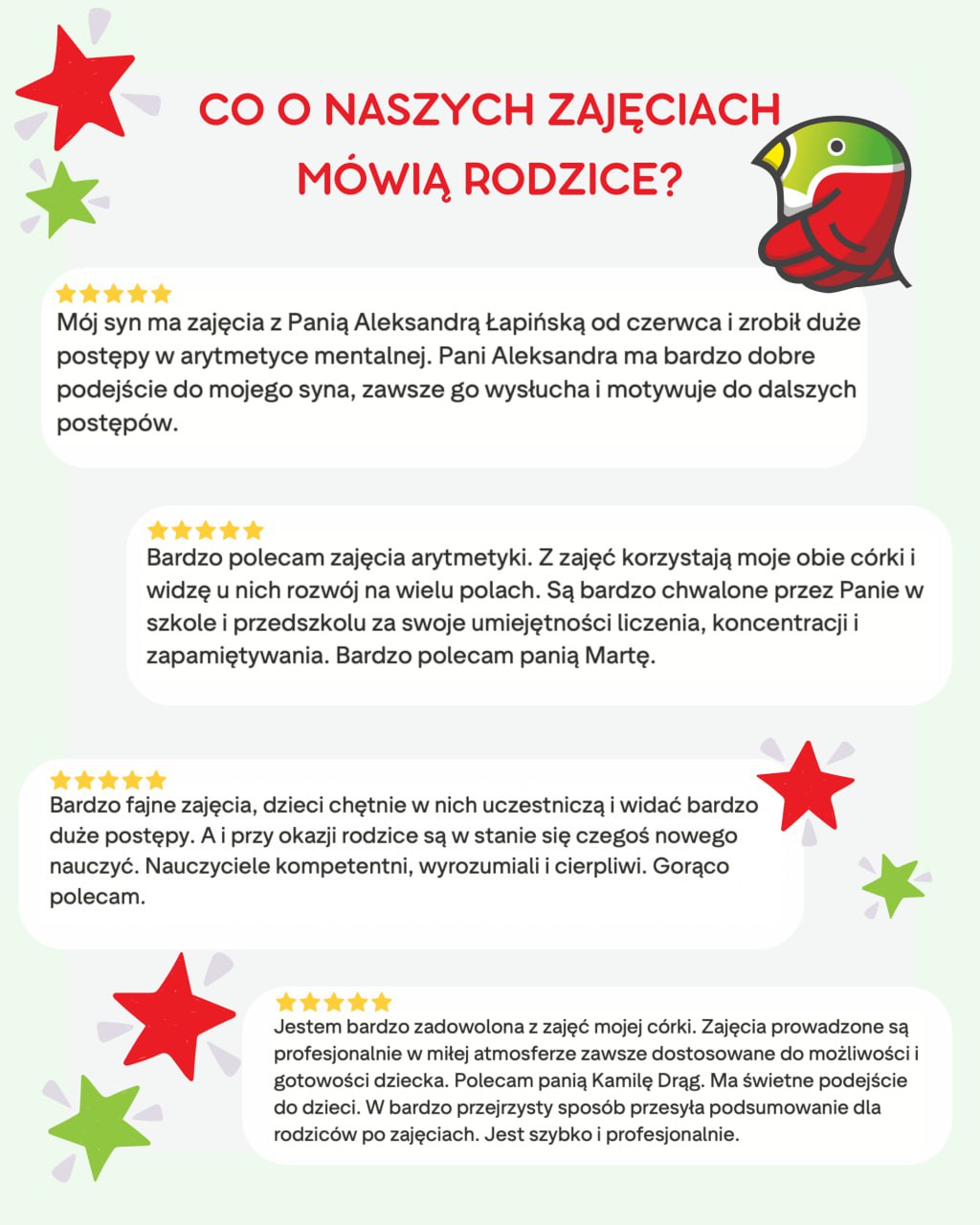 “ Nauka nigdy nie była tak przyjemna! 😍 – To tylko jedna z wielu opinii rodziców dzieci, które uczestniczą w naszych zajęciach arytmetyki mentalnej. 🧠➕ ”